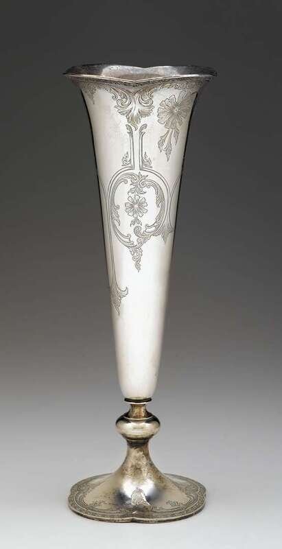 Large sterling silver trumpet vase spaulding & co., chicago, il, early 20th century