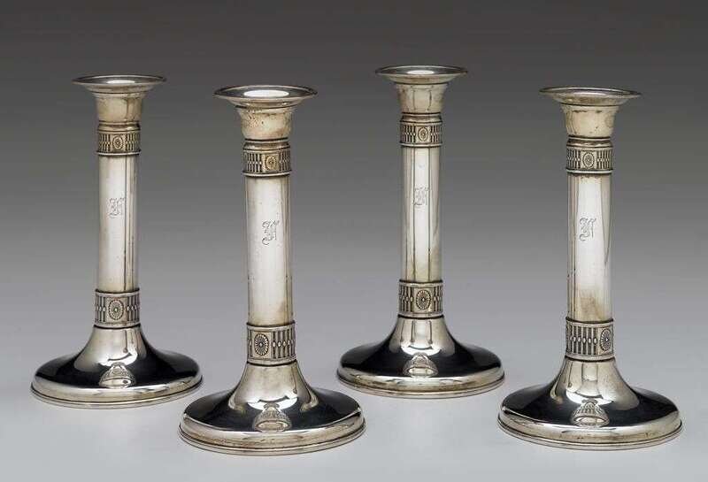 Set of four sterling silver candlesticks theodore b. starr, new york, ny, first quarter 20th century