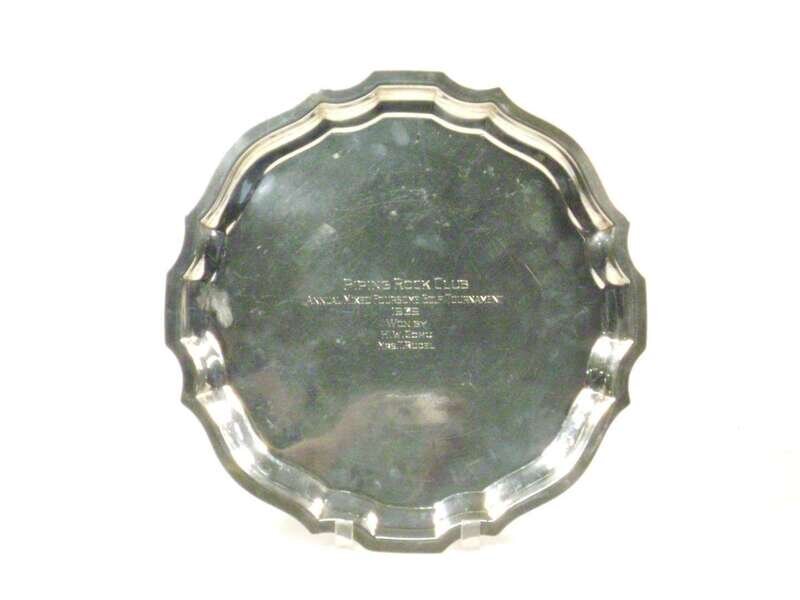 Circular serpentine shape with piecrust border engraved to the center "Piping Rock Club, Annual Mixed Foursome Golf Tournament, 1939..."