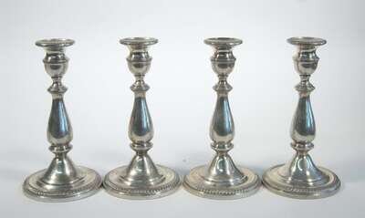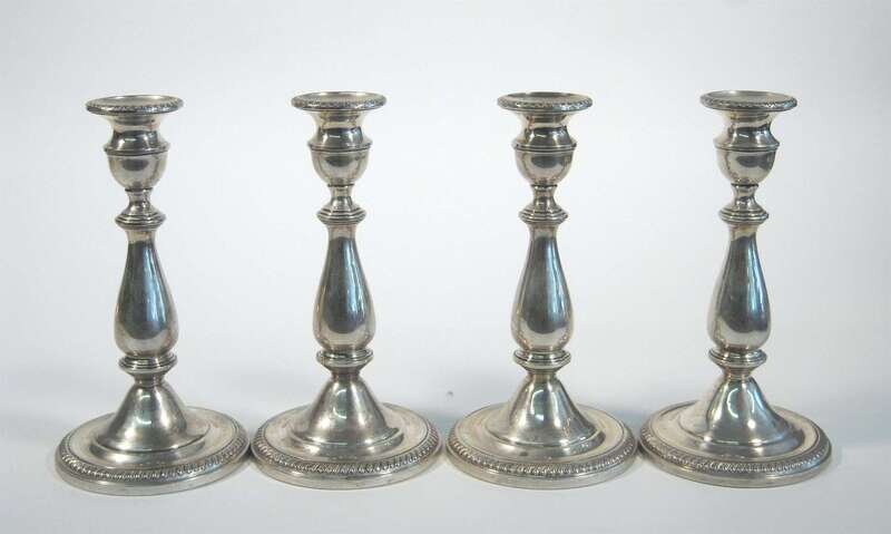 Including two pairs: one retailed by John Wanamaker, Philadelphia, PA, the other Mueck-Carey Co., New York, NY, all with baluster stems raised on circular bases with gadrooned rims.