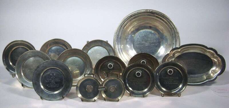 Various table articles engraved with presentation inscriptions from the United States Squash Racquets Association, Tri-City Championship, Philadelphia Inter-Club, etc. (14).