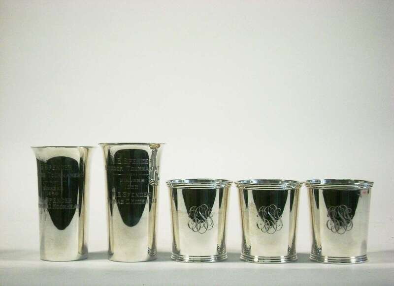 Including three Manchester Silver Co. beakers and two presentation beakers (one Preisner, the other Revere Silversmiths).