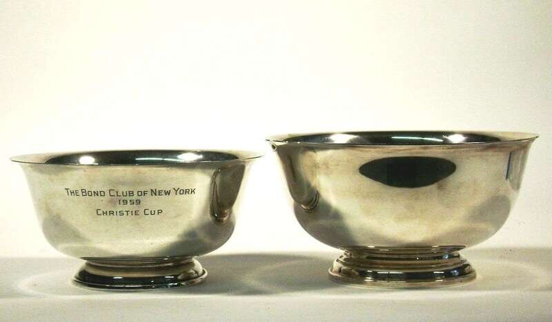 The larger bowl by International, the smaller bowl by Fisher and with engraved presentation inscription: "The Bond Club of New York, 1959, Christie Cup."