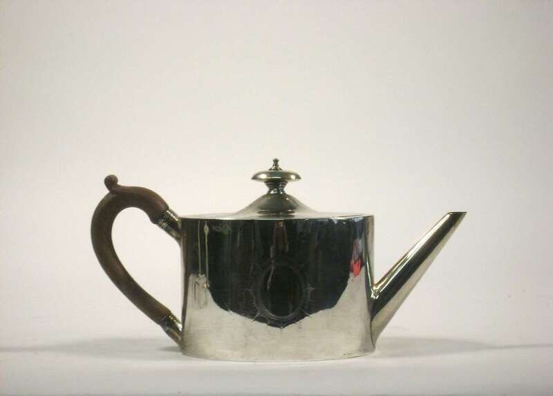 Oval form with crested wood handle and engraved with a vacant reserve to one side of the body. Scratch weight 12 = 4 to underside.