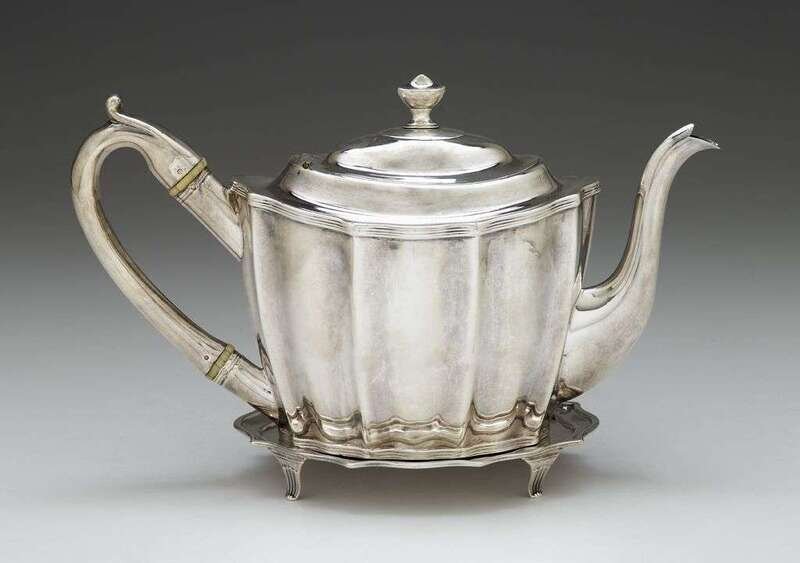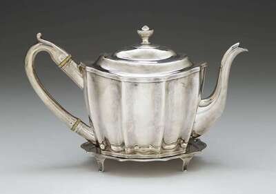 George III silver teapot on stand peter, ann & william bateman, london, 1800-1