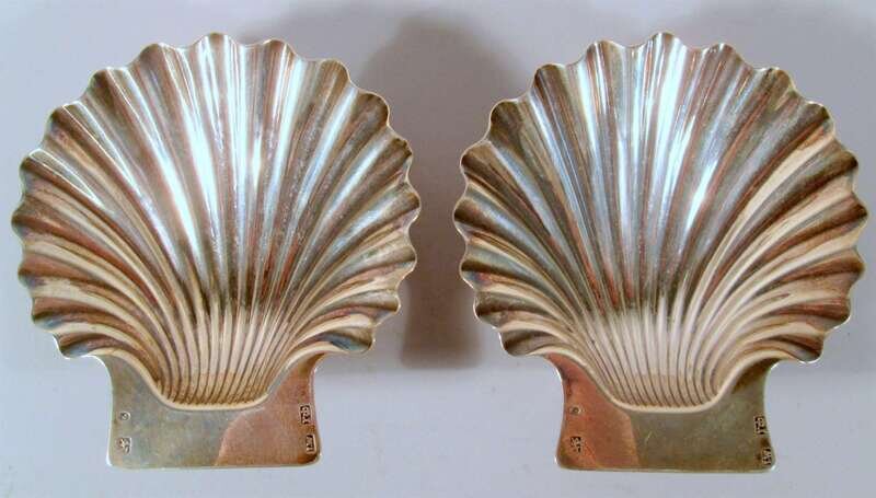 Each in the form of a scalloped shell and raised on three cast conch shell feet.