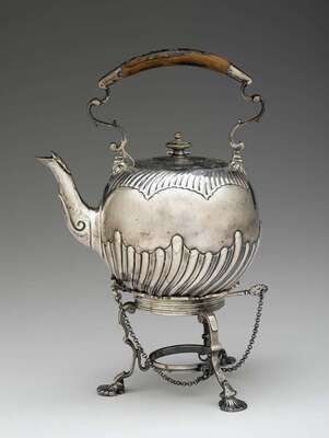 Victorian silver hot water kettle on stand charles stuart harris, london, 1889-90