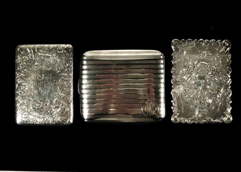 Two sterling silver calling card cases and a cigarette case