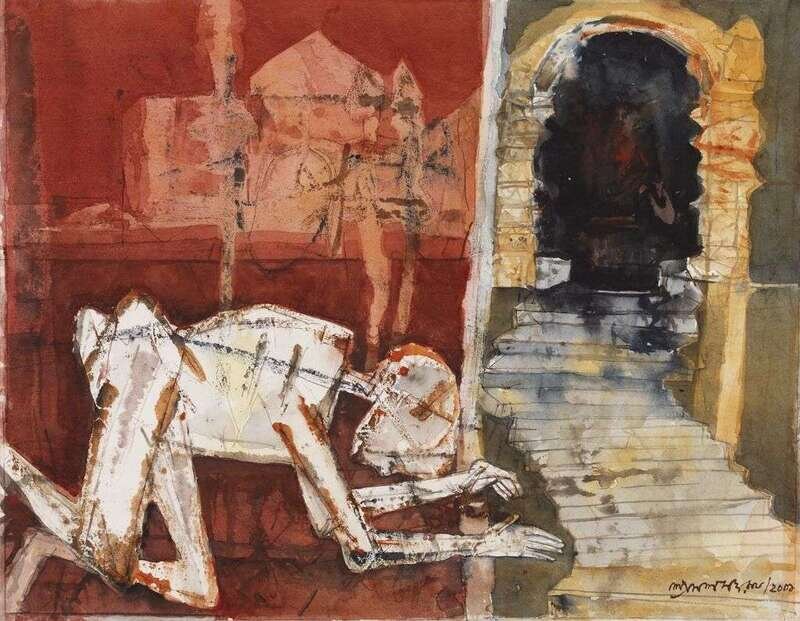 SHYAMAL DUTTA-RAY (INDIAN, 1934-2005) "MAN CRAWLING"