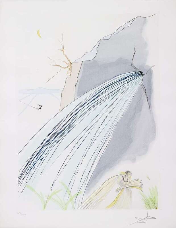 1975, the complete set of eleven signed and numbered engravings with color stencil variations, title and justification, copy 126/400 (there were also 50 in Roman numerals and a total of 300 South American copies), Leon Amiel, Paris, publisher and with his blindstamps. All with full margins, loose (as issued), on Arches, contained within blue fabric covered portfolio box with printed text and original metal medallion cast by the Hotel des Monnaies de Paris after an original wax mold by the artist embedded in cover.