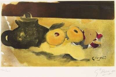 1960, pencil signed and numbered 230/300, with wide margins, Maeght, Paris, publisher. Color etching on BFK Rives.