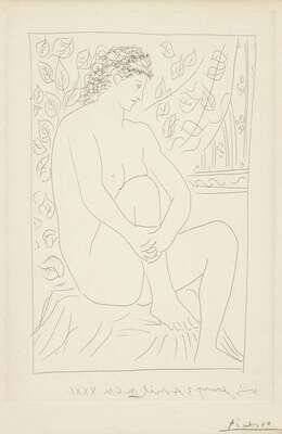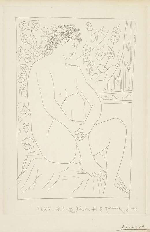 PABLO PICASSO (SPANISH, 1881-1973) "FEMME NUE ASSISE DEVANT UN RIDEAU"FROM "LA SUITE VOLLARD"