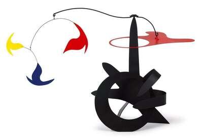 Incised with artist's name on base, painted and welded iron stabile