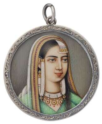 Sterling silver Persian miniature portrait pendant