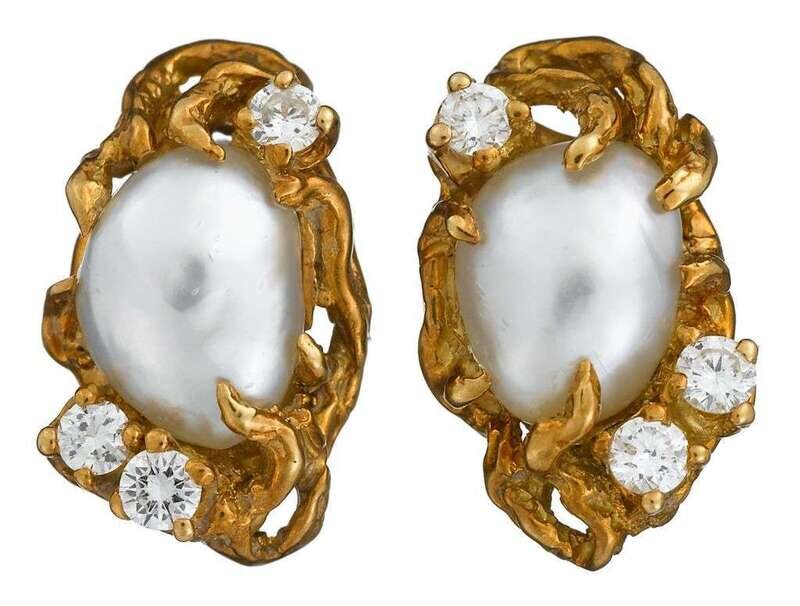 18 karat yellow gold silver baroque and diamond earrings, Arthur King