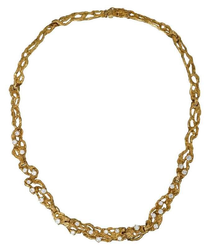 Rustic gold, accented by twenty petite round cut diamonds, 2.24 carat total weight. Featuring center removable section, accented by seven petite round cut diamonds, 0.67 carat total weight. Displaying maker's mark. Accompanied by original gift pouch.