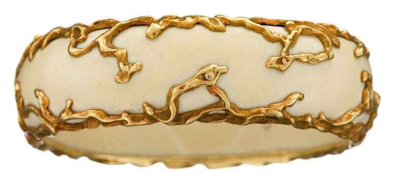 18 karat yellow gold and ivory bangle, Arthur King 1973