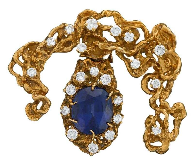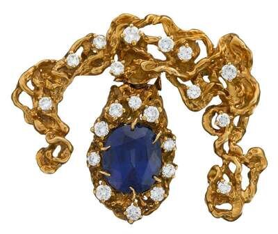 18 karat yellow gold sapphire and diamond brooch, Arthur King