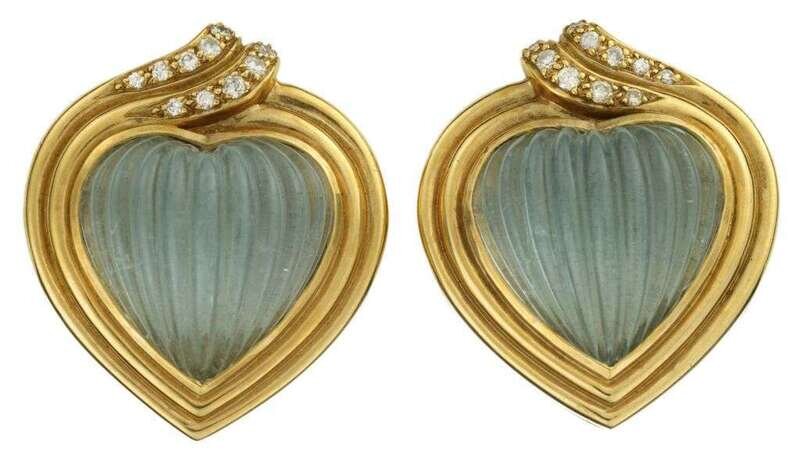 18 karat yellow gold carved aquamarine and diamond earrings, Van Cleef & Arpels