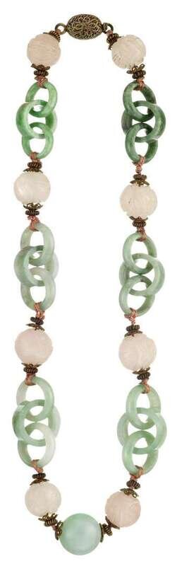 Rose quartz and jadeite necklace