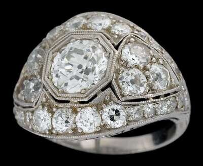 Center old european cut diamond, approximately 1.20 carats accented by petite round cut diamonds. Displaying indistinct maker's mark . Serial no. A2864.