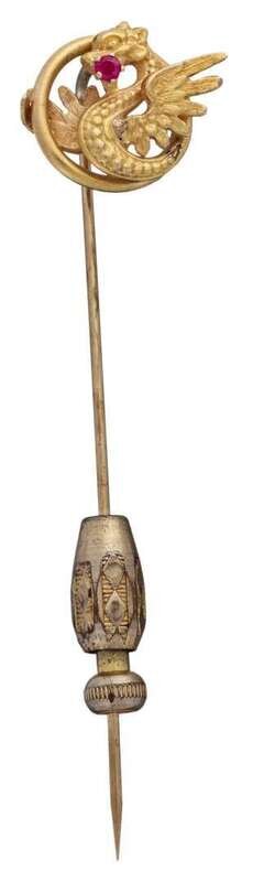 14 karat yellow gold and ruby 'dragon' stick pin
