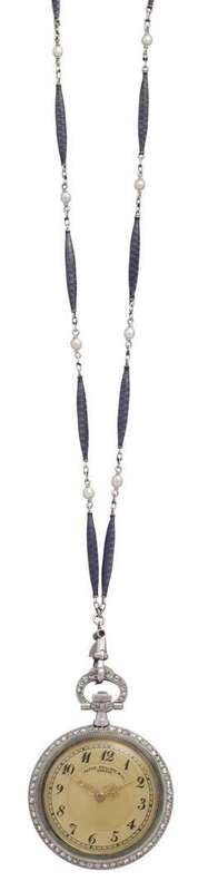 Lady's fine platinum, diamond and enamel pendant watch, Patek Philippe