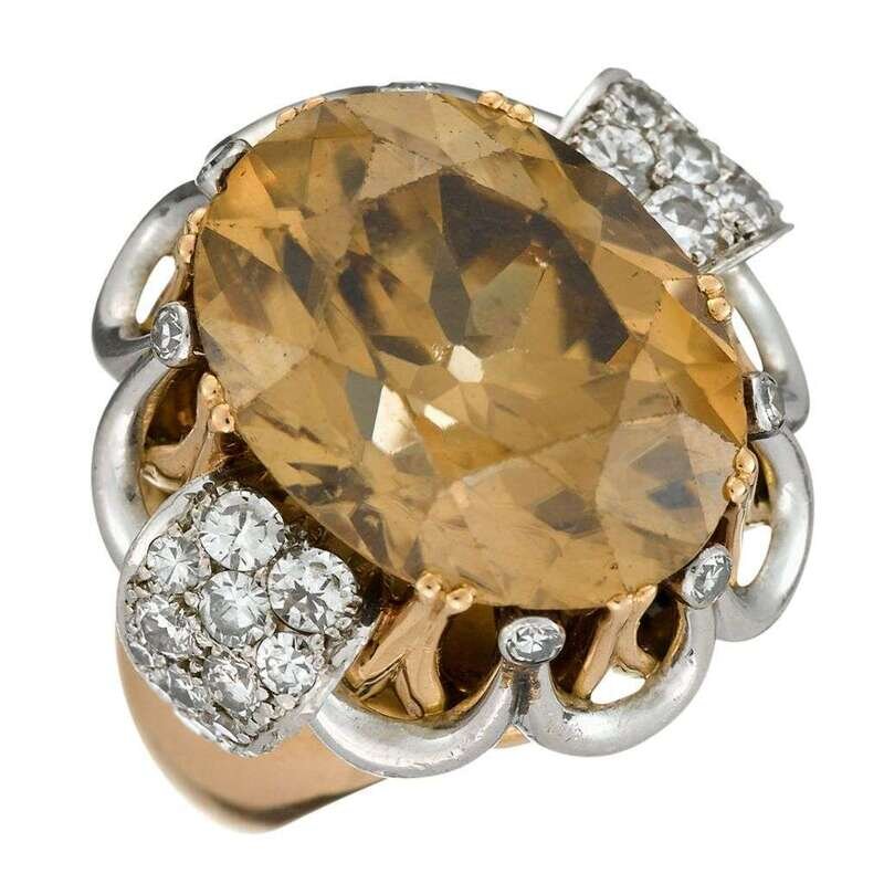 18 karat gold brown zircon and diamond ring 1940s