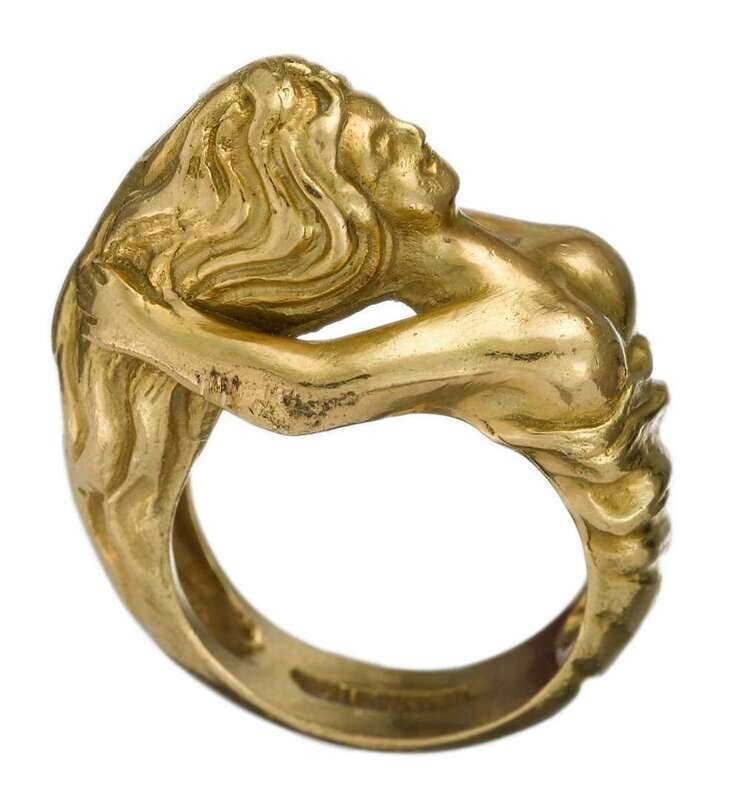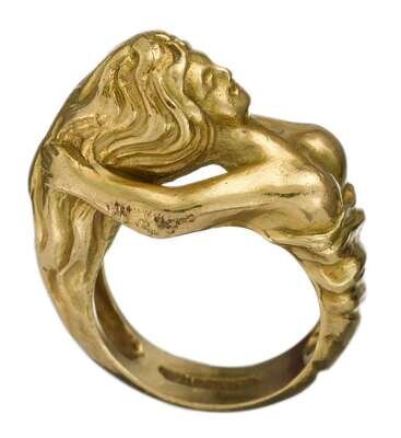 Female figural form ring. Signed by the maker.