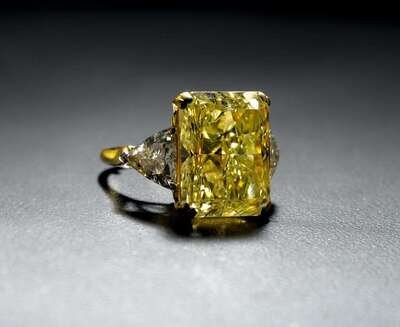 Impressive lady's 14.87 carat fancy yellow diamond ring