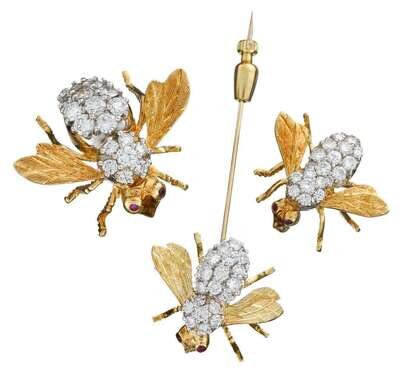 18 karat yellow gold and diamond 'bee' set