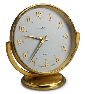 Gold tone desk clock, Cartier