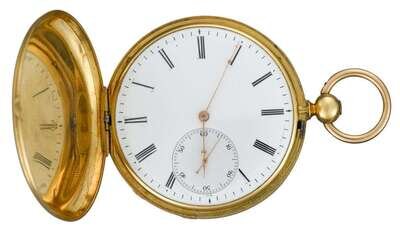 18 karat yellow gold pocket watch, T.F. Cooper retailed by otis averill, new york
