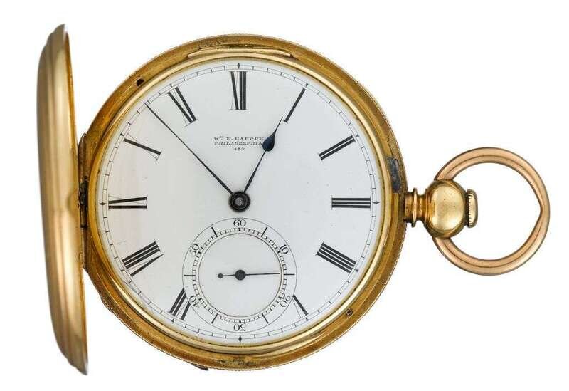 Gentleman's 18 karat yellow gold pocket watch, William E. Harpur 1863, retailed by bailey & co.