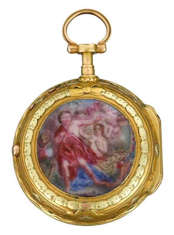 Lady's 18 karat yellow gold and enamel pocket watch, Philippe Terrot & Jean-Salomon Fazy geneva, ca. 1770s