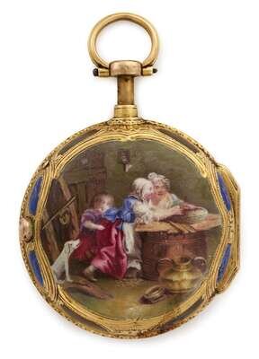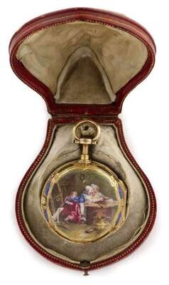 18 karat yellow gold and enamel pocket watch, Henri Voisin french, ca. 1750
