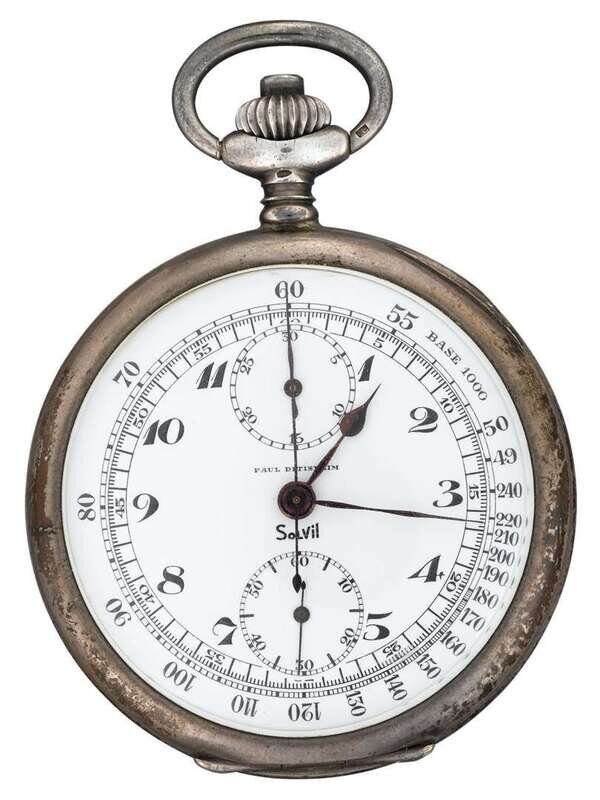 Silver chronograph pocket watch, Paul Ditisheim solvil, ca. 1910