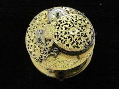 18 karat yellow gold pocket watch movement and face, Thomas Taylor in Holbourn holbourn, ca. mid 18th century