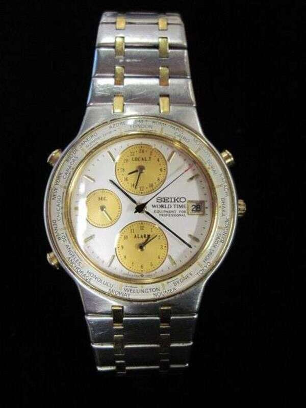 Gentleman's stainless steel and yellow gold world time wristwatch, Seiko