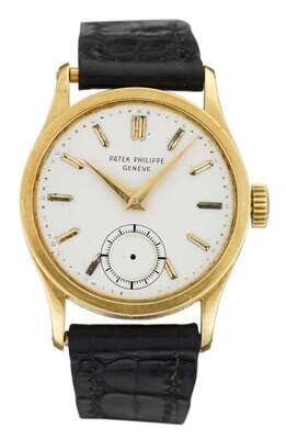Gentleman's 18 karat yellow gold wristwatch, Patek Philippe calatrava model, ca. 1950