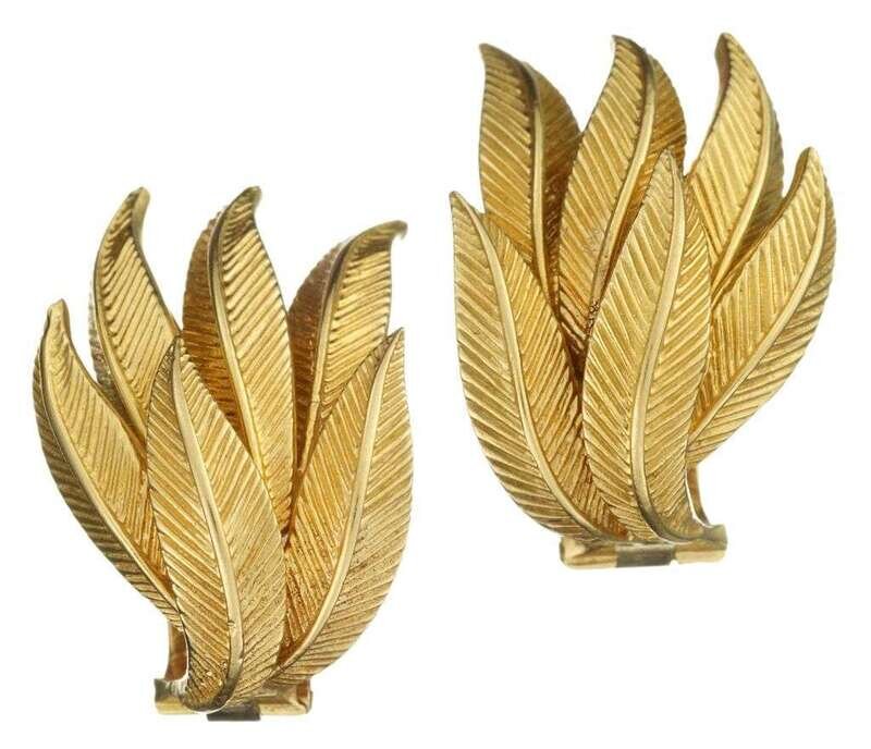 18 karat yellow gold 'spray leaf' earrings, Van Cleef & Arpels 1964