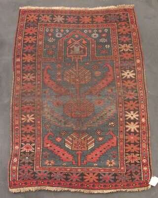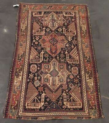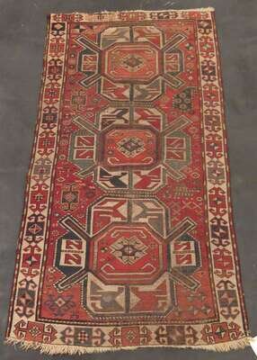 Comprising a Kazak rug, Southwest Caucasus, circa 1900, 3 ft. 11 in. x 3 ft. 2 in.; a Karabagh prayer rug, South Caucasus, circa 1st quarter 20th century, 4 ft. 4 in. x 3 ft.; an Akstafa rug, East Caucasus, circa 1900, 6 ft. 10 in. x 4 ft. 2 in.; and a Karabagh rug, South Caucasus, circa 1900, 7 ft. x 3 ft. 8 in. (4).