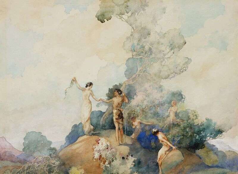 CHARLES ROBINSON (BRITISH 1870-1937) FOUR NYMPHS AND SHEPHERD