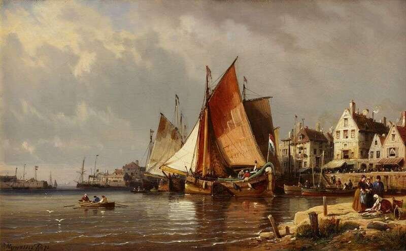 CHARLES EUPHRASIE KUWASSEG (FRENCH 1838-1904) BUSY HARBOR