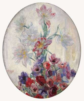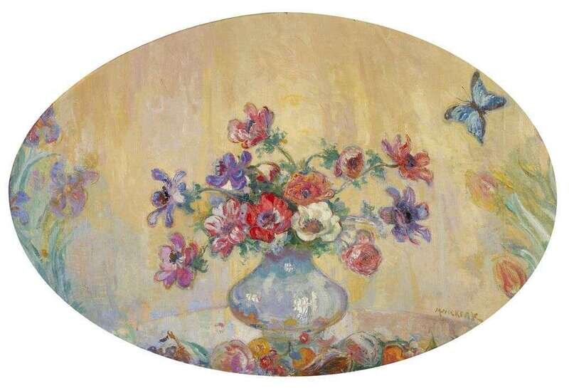 The Former signed 'M. NIEKERK' bottom right; the latter signed and dated 'Niekerk 1914' bottom left; also inscribed on label verso, both oil on canvas laid on board, oval