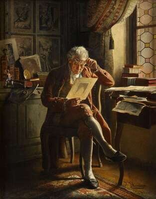 JOHANN HAMZA (GERMAN 1850-1927) "THE PRINT COLLECTOR"