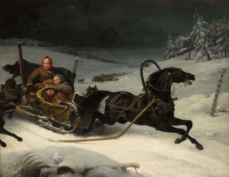 HENRICH FREDERIC SCHOPIN (GERMAN 1804-1880) SLEIGHING WITH WOLVES IN PURSUIT