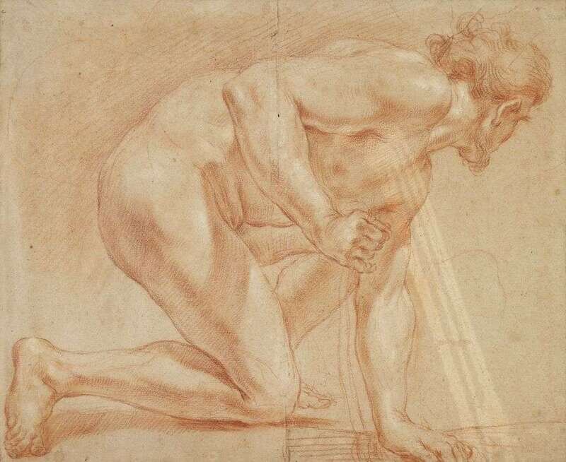 ATTRIBUTED TO GAETANO GANDOLFI (ITALIAN 1734-1802) CROUCHING MAN