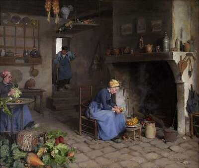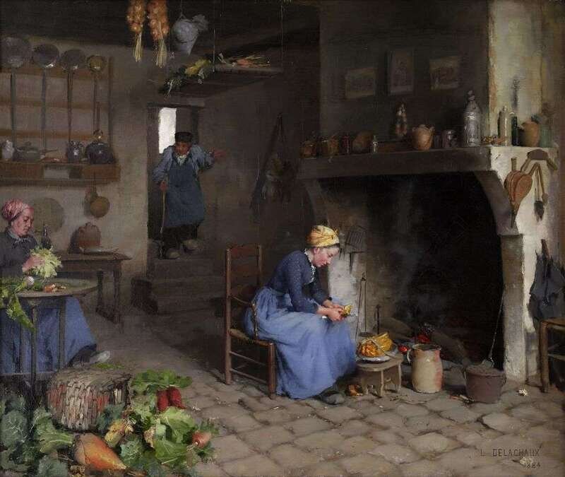 LEON DELACHAUX (SWISS 1850-1919) INTERIOR AT GREZ, FRANCE