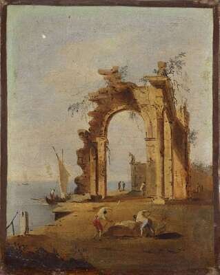 FOLLOWER OF FRANCESCO GUARDI (ITALIAN 1712-1793) CAPRICCIO WITH RUINED ARCH